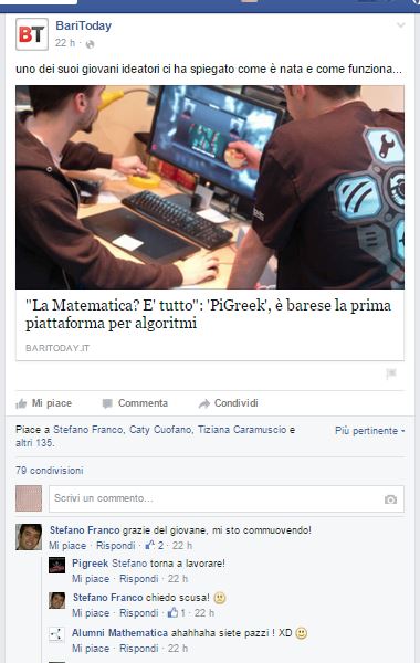 "SocialMediaStrategy1" - 380 × 600 in Intervista per BariToday sulla startup Pigreek ← Immagine successiva stefano Mathematician, Dreamer, Crazy (a bit) Pubblicato 1 Ottobre 2015